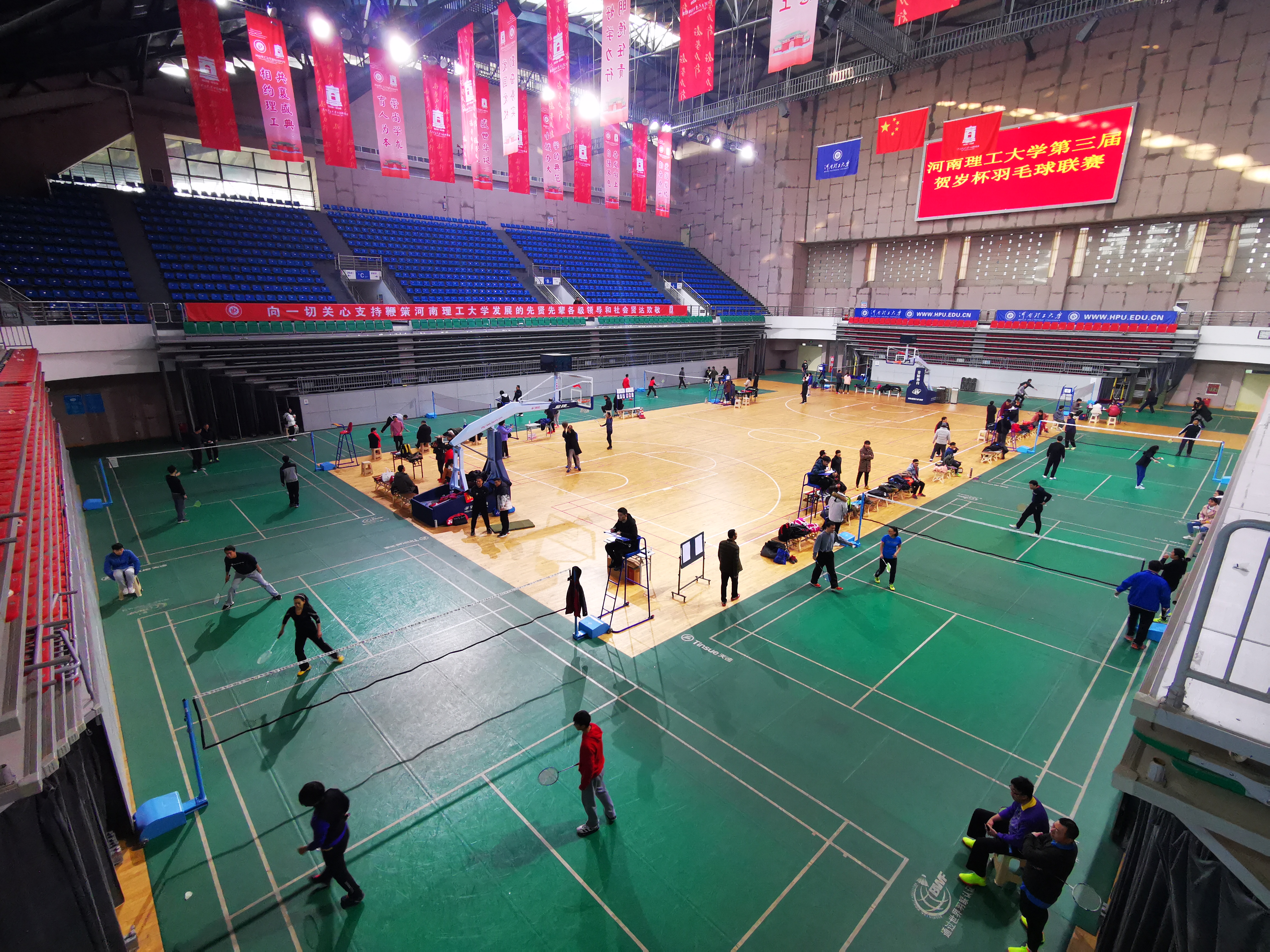 12月29日上午8:00,由校工会主办、教职工羽毛球协会和体育场馆管理中心协办的第三届“贺岁杯”教职工羽毛球比赛在南校区体育馆正式开赛。本次比赛共有16支代表队、200余人次参加,采用中国羽协审定的2017版《羽毛球竞赛规则》,裁判由校羽毛球协会教师及学生担任。
