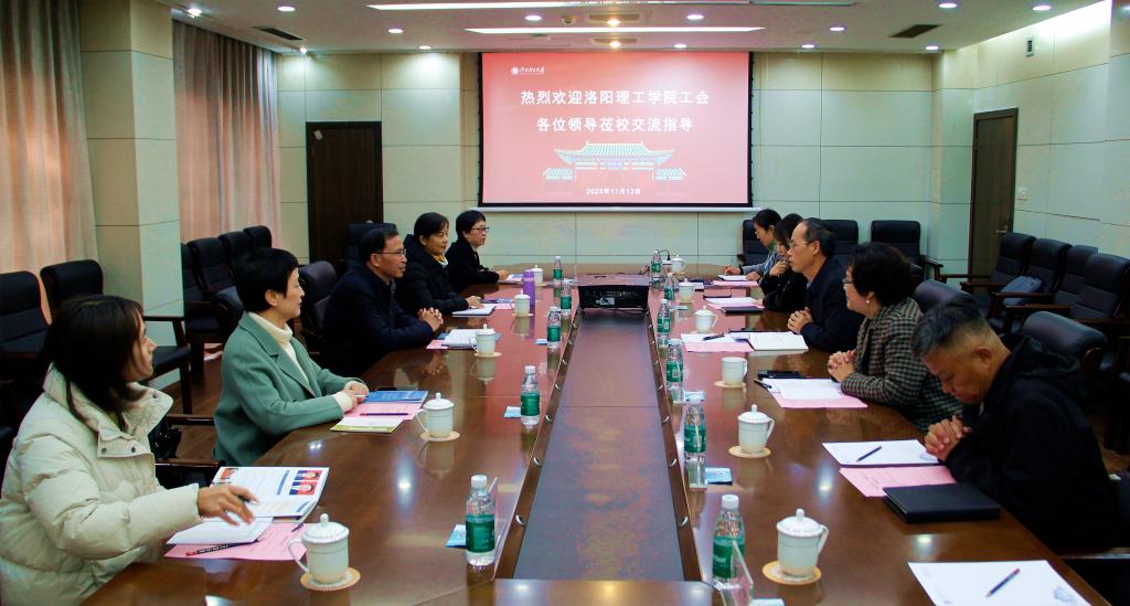 11月13日下午,洛阳理工学院工会副主席王群芳,工会副主席、女工委主任杨卫芹等一行5人莅校考察交流。校工会在南校区行政楼一楼会议室举行座谈会,校工会副主席欧阳文峰,副主席、女工委主任许静宜,工会办公室主任王慧颖等参加座谈。