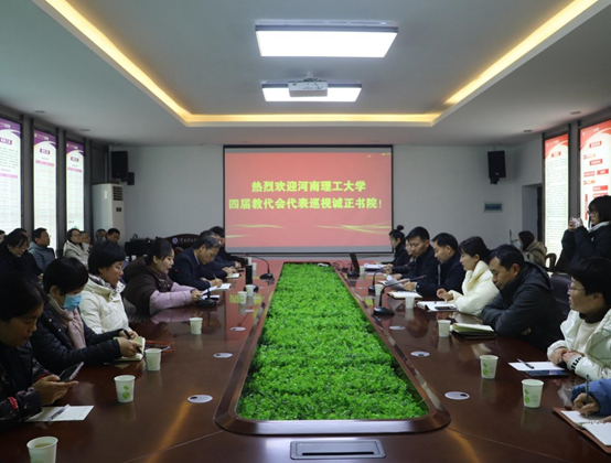 为了更好地发挥教代会民主参与、民主管理和民主监督作用,促进学校民主政治建设,12月14日,校工会组织来自各二级工会的近30名校教代会代表对诚正书院开展巡视。巡视座谈会在北校区文法学院一楼会议室召开,校工会副主席、四届教代会民主管理监督委员会主任欧阳文峰,诚正书院领导班子成员、校办北校区工作办公室负责人出席座谈会。会议由校工会办公室主任王慧颖主持。