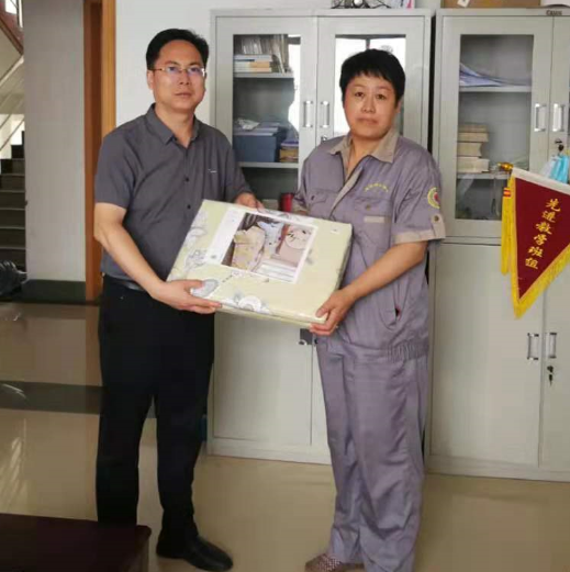 6月16日上午,创新创业学院(工程训练中心)党总支书记张光胜、院长(主任)张英琦,副院长(副主任)、工会主席徐春浩等人专程到实训一线慰问了即将退休的实训指导教师徐晓华,并送去退休纪念品及该院全体教职工的问候和祝福。