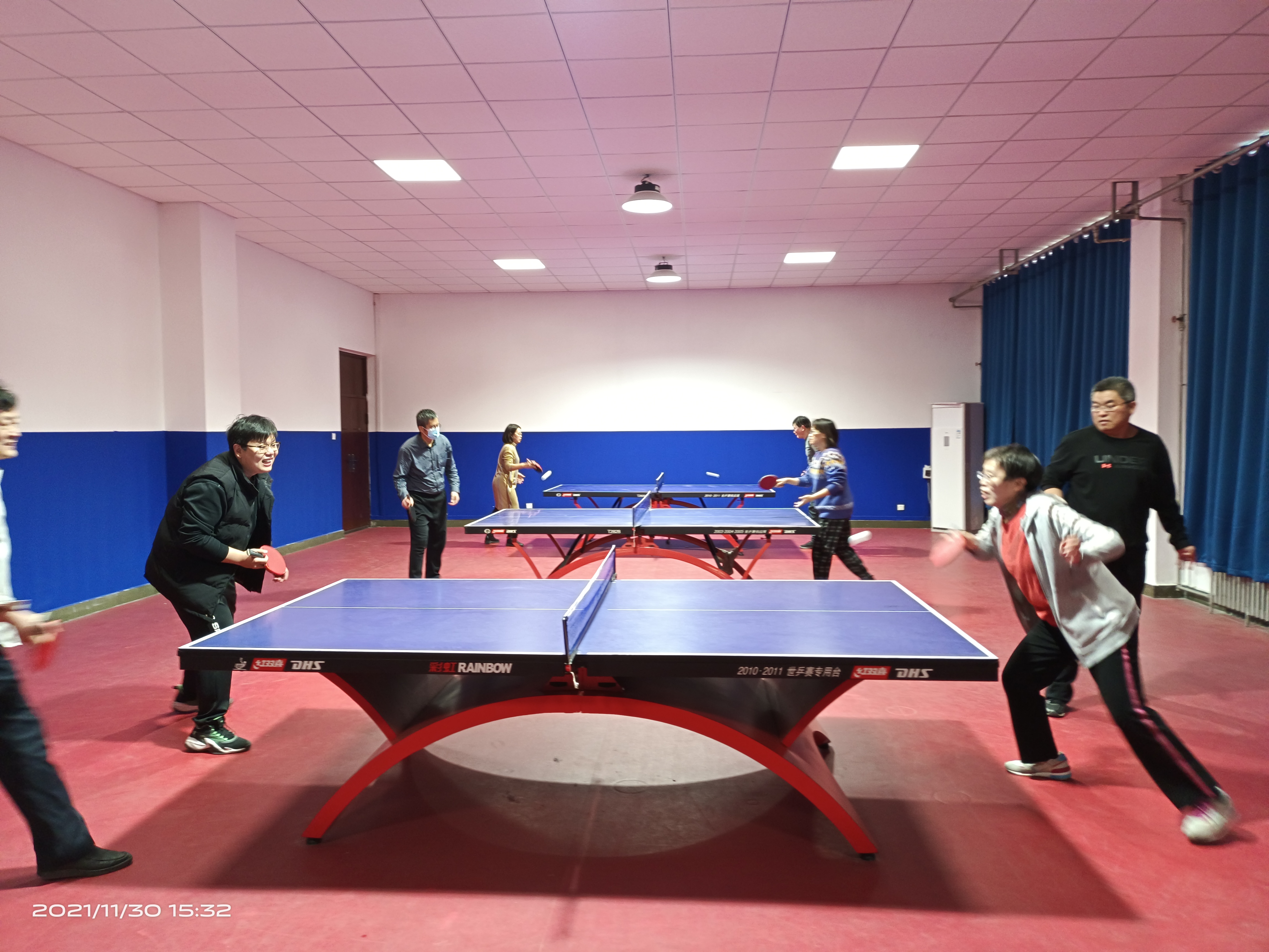 2021年11月30日下午,由财经学院工会主办的学院教职工乒乓球交流赛在学院教工之家举行。来自机关、会计、财管、国贸、金融等系室的近30名选手组成五支队伍参加了比赛,各支队伍分别给自己确定了响亮的队名,团结队、飞虎队、奋发队、强国队、振兴队。此次活动旨在丰富我院职工的业余生活,加强体育锻炼,增进员工间的交流协作。