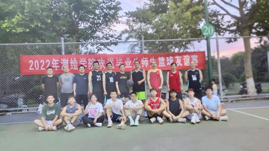 下午四点半,师生篮球代表队队员齐聚篮球场,炎炎烈日并没有影响广大师生的参赛热情。虽是友谊赛,但对战双方毫不谦让。在比赛的过程中,场上的队员们奋力拼搏,给现场的观众呈现出一场精彩的比赛。教师队凭借娴熟的配合,过人的意志,频频得分,充分展现了教师们的风采;学生队也不甘示弱,凭借敢打敢拼的作风,充分发扬了测绘学院新时代毕业生团结向上的精神风貌。最后,测绘学院教工篮球队和毕业生代表队在欢快友好的气氛中合影留念。