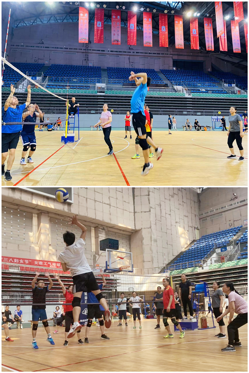 赛场上,随着裁判员一声哨响,比赛拉开帷幕。发球、一传、二传、扣杀、拦网、护球......队员们个个精神抖擞、跃跃欲试,场下观众不时为队友呐喊助威,加油鼓劲。图书馆队思想统一、目标明确,在赛场上发挥团结互助精神,凭借流畅的攻守、默契的配合、过人的意志,打出了气势,打出了友谊,为观众呈现了一场场精彩的视觉盛宴。