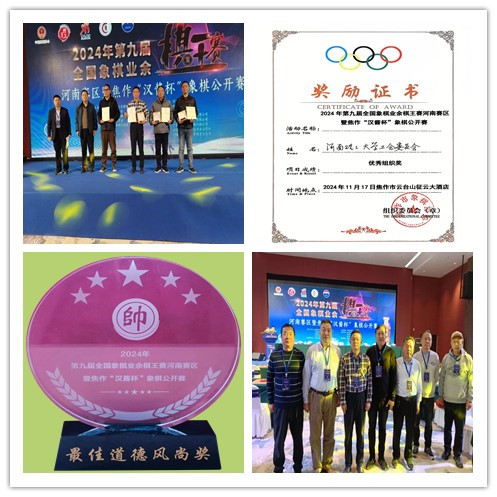 在2024年第九届全国业余棋王赛河南赛区暨焦作 “汉酱杯” 象棋公开赛中,河南理工大学象棋协会表现卓越,一举斩获优秀组织奖和最佳道德风尚奖,成为赛场上备受瞩目的焦点。