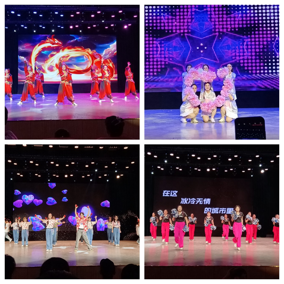 比赛在《万物生》的旋律中拉开序幕,各参赛队凭借精彩的表演将现场气氛推向高潮,征服了在场观众。教职工们身着表演服,从讲台走到舞台,展现多元新奇的一面。礼堂内座无虚席,现场气氛热烈浓厚,掌声与欢呼声此起彼伏。经过激烈角逐,最终获奖情况如下:特等奖由后勤保障部《咱们工人有力量》摘得;一等奖分别由资产公司《山歌映丹心》、测绘学院《豫韵师情,戏舞芳华》、医学院《红绫舞乾坤》以及外国语学院《炫彩节拍》获得;二等奖由物电学院《爱在秋风里》、工商学院《快乐舞步 Go Go Go!》、应急学院《哪吒凌云志》、安全学院《铸就中华魂》、数信学院《活力中国》和计算机学院《同爱同在》收入囊中;表演奖由体育学院《奔跑的青春》斩获。此外,大赛还设置了特别奖项,最佳编排奖由数信学院获得;最佳服装奖由应急学院夺得;最佳完成奖由资产公司拿下;最佳表演奖由后勤保障部摘取;最佳组织奖由物电学院荣获。至此,本次大赛圆满落幕。