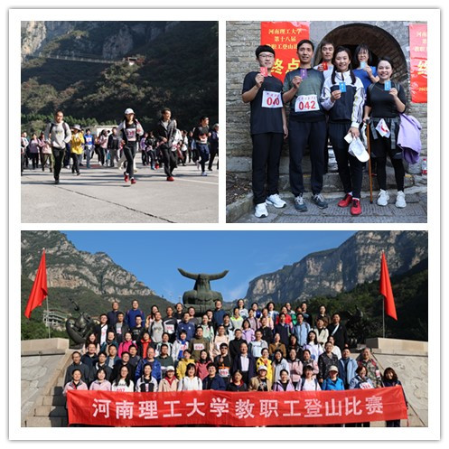 秋光绚丽映山色,登高竞技展豪情。10月21日,我校第十八届教职工登山比赛在沁阳神农山举行。本次活动由校工会举办,建艺学院工会承办。校工会副主席、女工委主任许静宜,工会办公室主任王慧颖以及来自全校各单位的95名教职工参加了比赛。