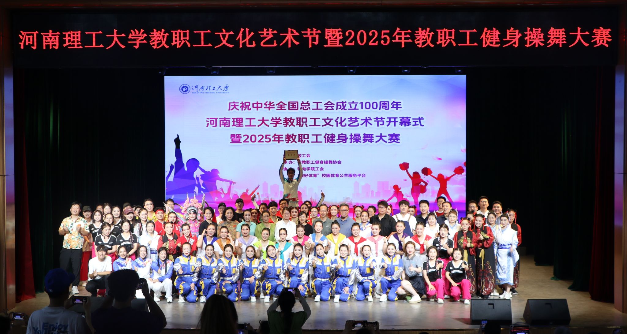 教职工们在舞台上的精彩表现赢得喝彩,彰显了我校教职工积极向上、充满激情与活力的良好精神风貌。比赛丰富了教职工的精神文化生活,提升了身体素质与健康水平,推动了学校体育文化的繁荣发展,为庆祝中华全国总工会成立 100 周年献上了一份精彩的文化厚礼。