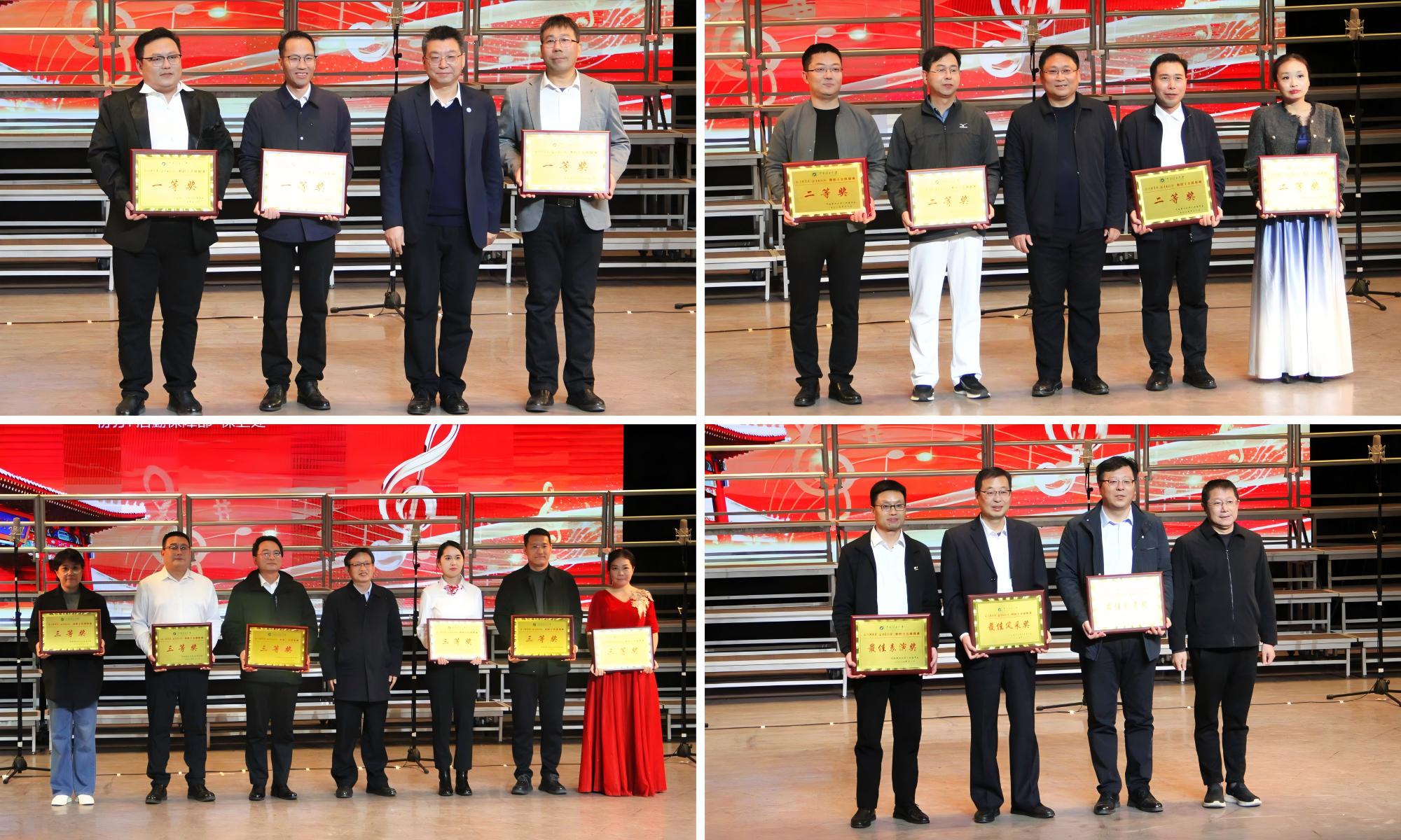 来自全校23个单位约1500名教职工用激昂的旋律和饱满的热情,为现场观众奉献了一场震撼心灵的视听盛宴。必唱曲目《河南理工大学校歌》,唱出了理工人共同的精神追求和爱校情怀;自选曲目从经典的《保卫黄河》到脍炙人口的《祖国不会忘记》等,一首首耳熟能详的歌曲展现了我校教职工团结向上的精神面貌和爱国热情。最终,后勤保障部、机关工会、能源学院凭借出色的表现获得一等奖;医学院、测绘学院、建艺学院、工商学院获得二等奖;数信学院、软件学院、财经学院等六个单位获得三等奖。音乐学院获得最佳表演奖,资环学院、电气学院分获最佳风采奖和最佳创意奖。安全学院、图书与档案馆、计算机学院等单位获得优秀组织奖。