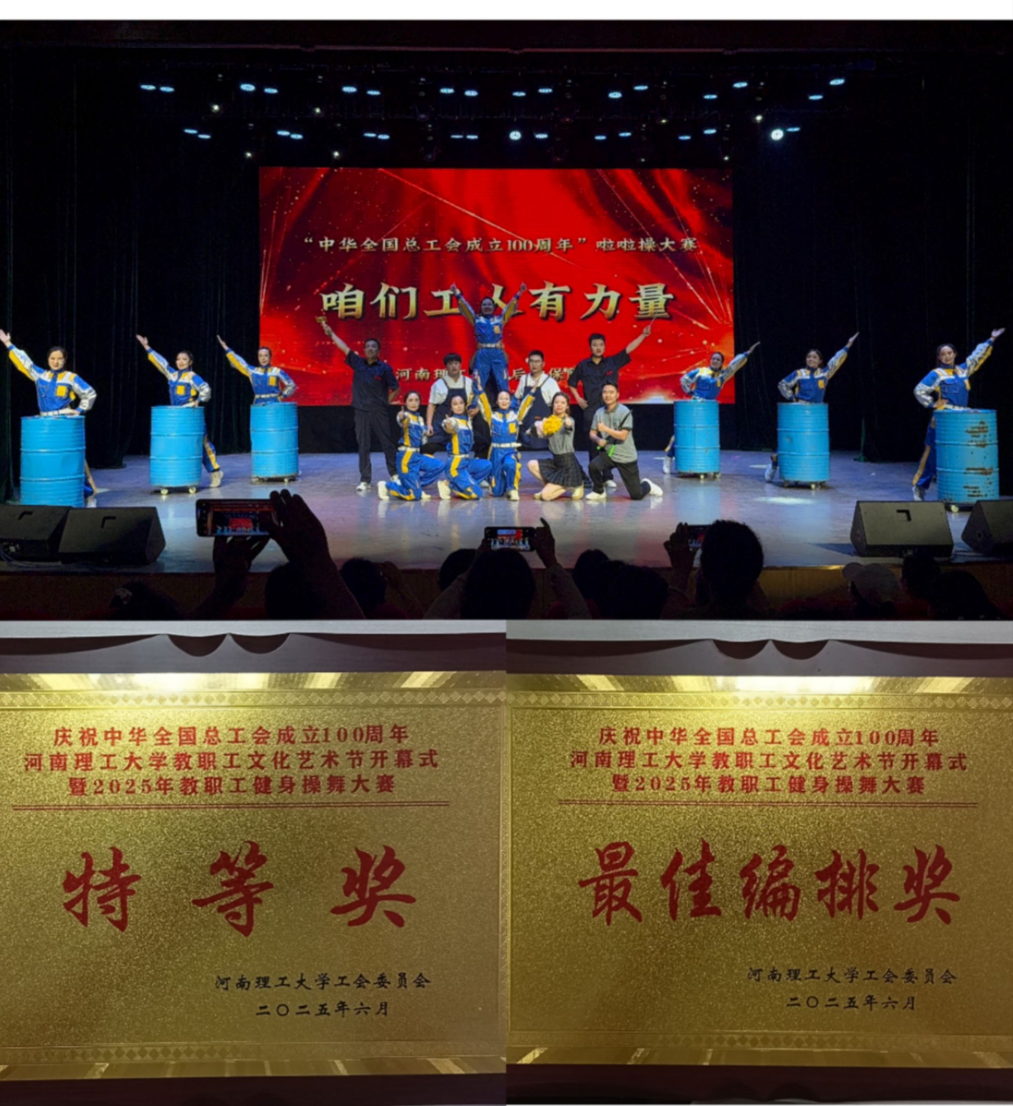 在中华全国总工会成立100周年之际,我校后勤保障部传来喜讯:在近日举行的教职工啦啦操比赛中,后勤保障部代表队凭借精湛的技艺与昂扬的精神风貌,一举夺得特等奖与最佳编排奖两项重磅荣誉,以优异成绩向全总百年华诞献上诚挚贺礼。