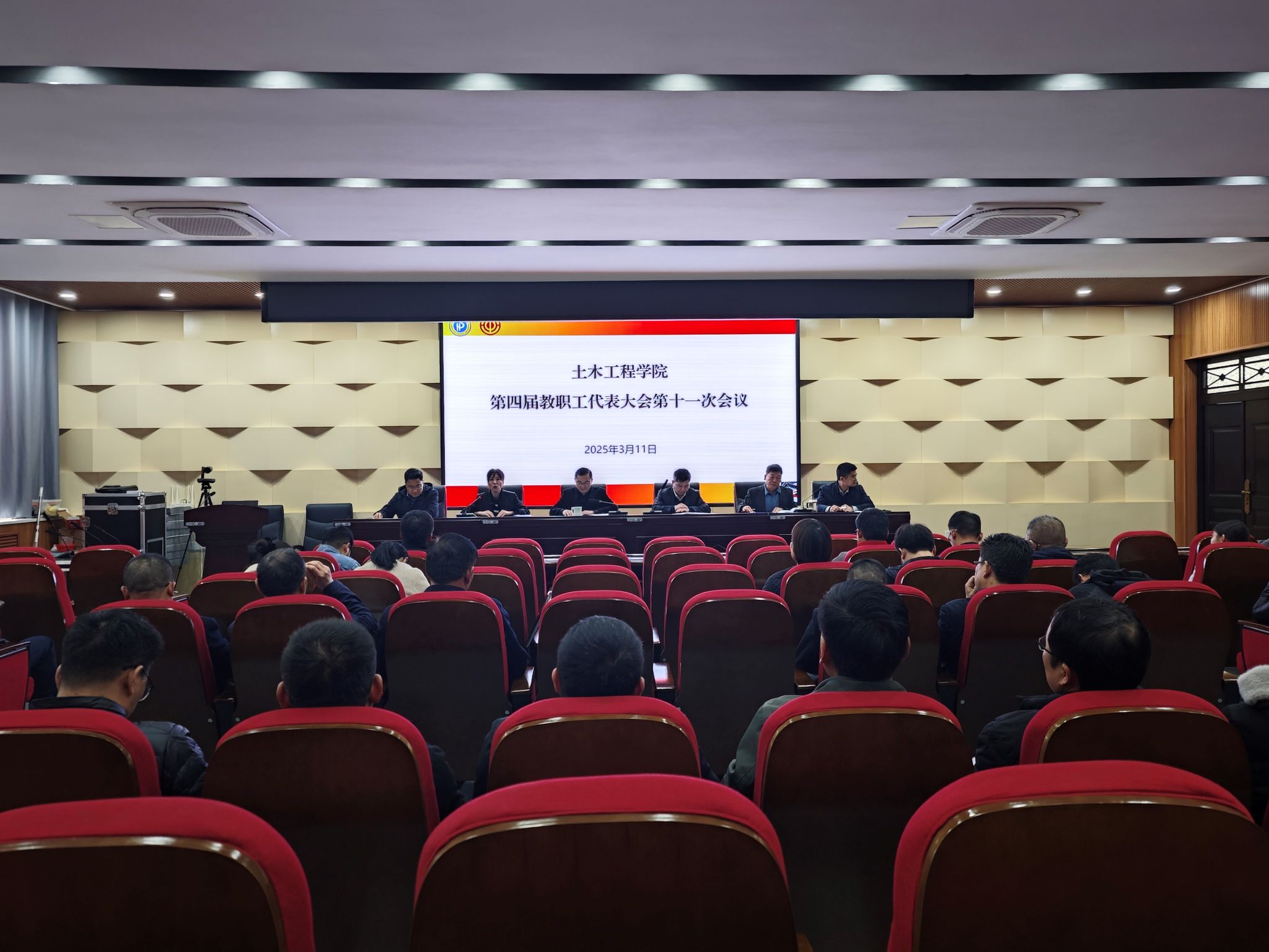 3月11日下午,土木工程学院第四届教职工代表大会第十一次会议在学院101会议室隆重召开,39名教职工代表出席会议,会议由院工会主席杨波主持。