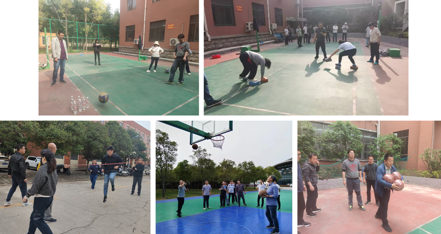 本次趣味运动会共设五个项目,分别是趣味保龄球、跳绳接力、摸石头过河、抱球往返跑和趣味篮球。这些项目不仅考验了教职工的身体素质,更在轻松愉快的氛围中锻炼了大家的团队协作精神和竞争意识。活动伊始,趣味保龄球赛场便吸引了众多教职工的眼球。老师们纷纷尝试,球与瓶的碰撞声此起彼伏,每一次成功的击倒都伴随着欢声笑语,大家在轻松的氛围中享受着运动的乐趣。跳绳接力赛现场,教职工们配合默契,快速传递跳绳,展现出了出色的团队协作能力。摸石头过河项目中,老师们小心翼翼,步步为营,充分展示了他们的平衡能力和应变能力。抱球往返跑比赛中,老师们抱着球在跑道上疾驰,每一次的冲刺都彰显着他们的活力与激情。而在趣味篮球场上,大家则通过巧妙的配合和精准的投篮,展现出了不错的篮球技艺。