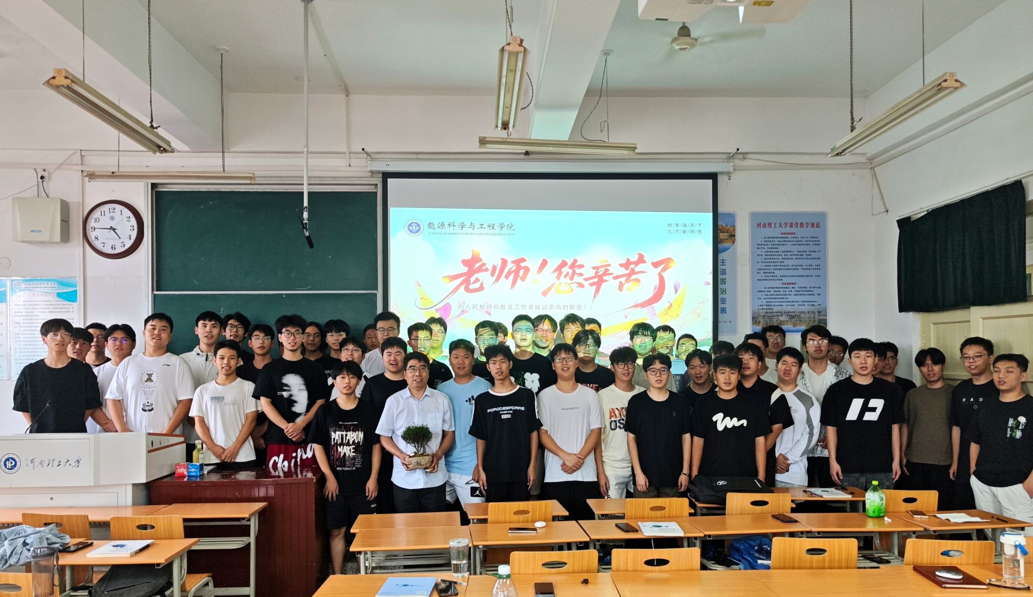 金秋九月,师恩难忘。在第41个教师节来临之际,校园内弥漫着温馨与感恩的气氛。课间,能源学院学生代表手捧鲜花、绿植走上讲台,向任课老师深深鞠躬:“老师,您辛苦了!祝您教师节快乐!”现场掌声雷动,师生情谊感人至深。