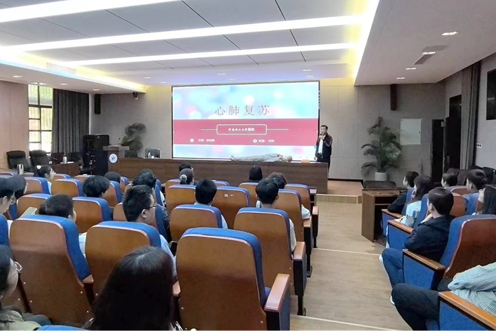 为增强师生安全防范意识,进一步普及急救知识,提高师生的应急救护能力,4月16日下午,安全学院邀请校医院和我校第一附属医院团队在101会议室举办急救知识培训讲座,并进行现场演练。该院全体教师和部分学生代表参加。