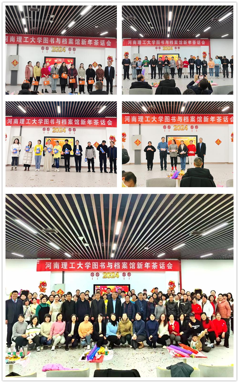 雪庆丰年恭玉兔,龙携紫气贺新春。2023年12月29日下午,图书与档案馆在南一馆举办了2024年元旦茶话会,馆领导与全体职工欢聚一堂,共话新年。茶话会由吕学财、杨文娟主持。