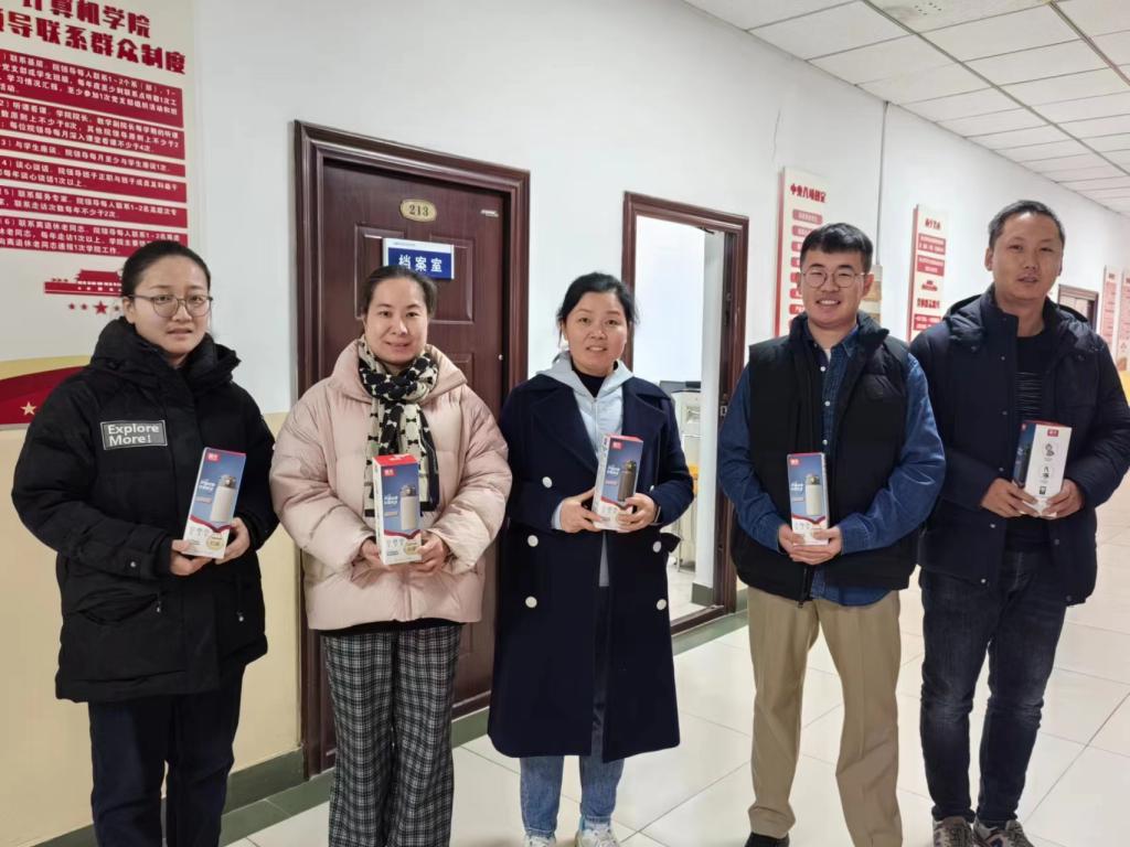 本年度送温暖活动,学院工会为全体教职工精心挑选制作了具有学院院徽、院名标识的定制保温水壶,既有很强的实用价值,又体现学院的文化符号。小小的保温水壶传递了学院的满满深情。教职工对保温水壶爱不释手,对学院的关心关爱表示感谢。