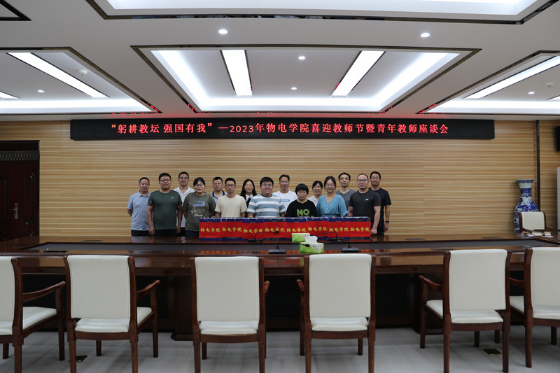 在我国第39个教师节到来之际,为深入推进学习贯彻习近平新时代中国特色社会主义思想主题教育,大力推进教育强国、科技强国、人才强国建设,引导学院广大教师树立立德树人、自信自强的精神风貌,营造尊师重教的良好氛围,物电学院工会组织召开“‘躬耕教坛 强国有我’---2023年物电学院喜迎教师节暨青年教师座谈会”。学院党委书记张长森等领导、各系主任及学院青年教师参加座谈会,会议由院党委副书记、院工会主席康俊亚主持。