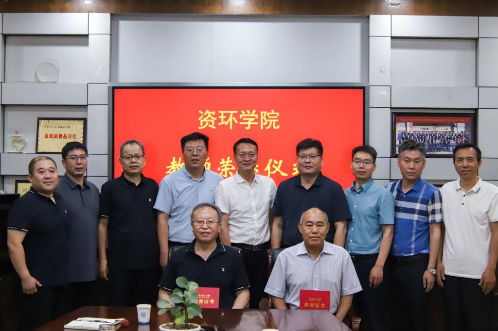 立德树人育桃李,匠心筑梦谱华章。6月26日下午,资环学院在资环楼212会议室举行潘国营教授、庞绪成教师荣退仪式。学院领导班子成员、各系(室)教师代表一同见证了这一光荣温馨时刻。仪式由学院工会主席、党委副书记孙付伟主持。