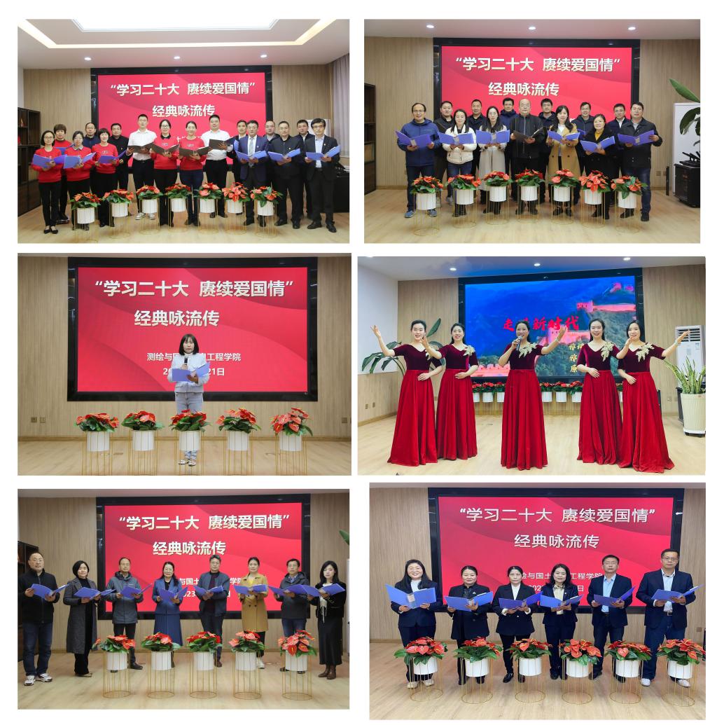 为深入学习宣传贯彻党的二十大精神,引导师生传承红色基因,丰富广大教职工的业余文化生活,3月21日-23日,测绘学院组织开展了“学习二十大 赓续爱国情”经典咏流传活动。