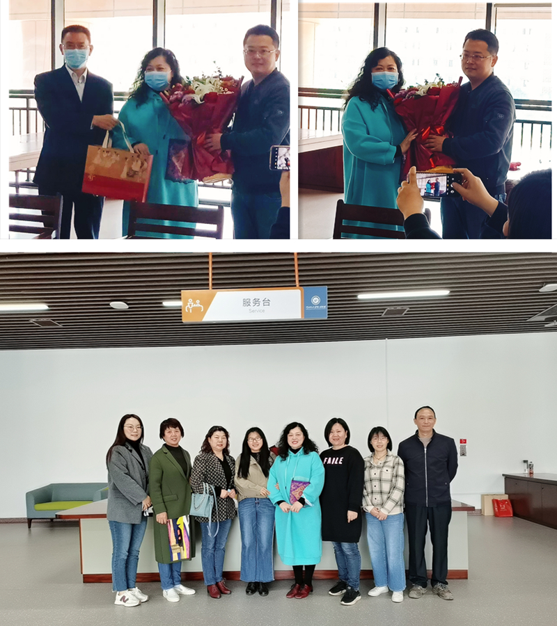 李天姿首先致辞,回顾了张艳老师的工作经历,感谢她几十年如一日在平凡的岗位默默奉献、绽放芳华。随后,李天姿和杨凯分别为张艳老师献上美丽的鲜花和荣休纪念品,祝福她在新的人生阶段享受美好生活、更加开心快乐。