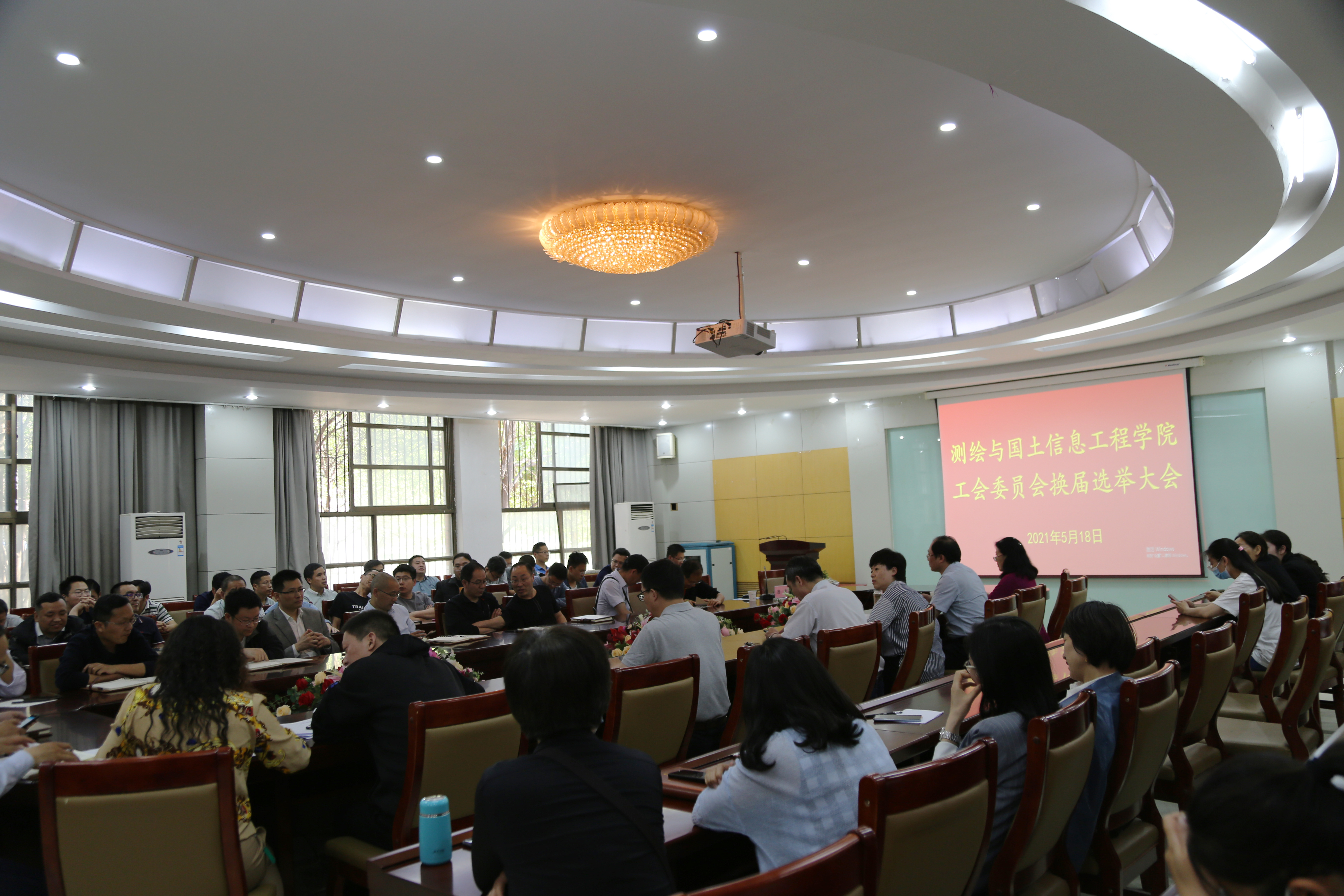 5月18日下午,测绘学院在院一楼会议室召开工会委员会换届选举大会,全体工会会员参加了选举大会。大会由院上届工会主席许辉主持。