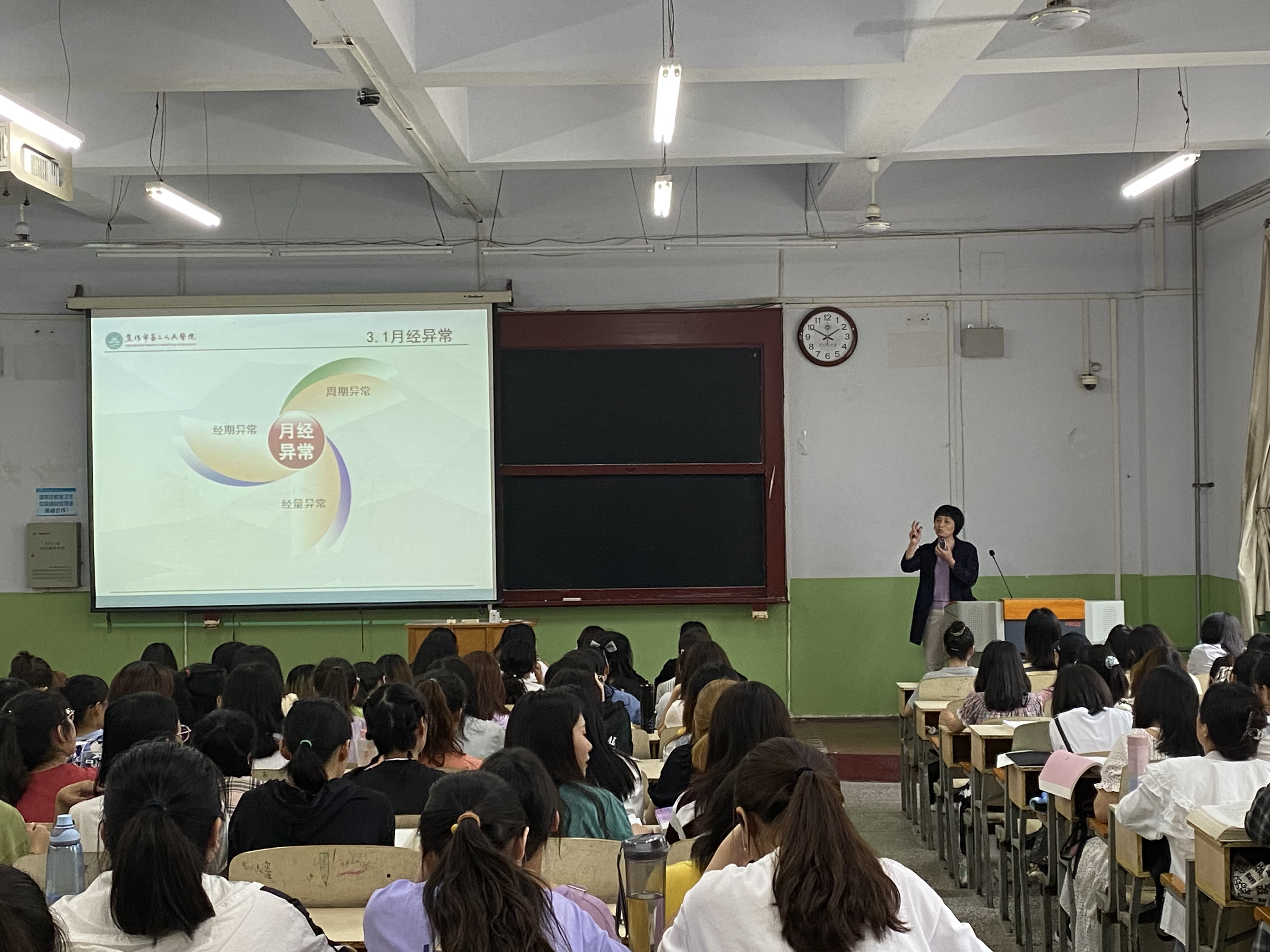 5月13日下午在北校区2101教室,医学院邀请了校一附院妇产科主任申延琴为学院女生做关注高校女生生殖健康主题讲座,讲座由院学工办主任李金丽老师主持,学院160余名女生参加。