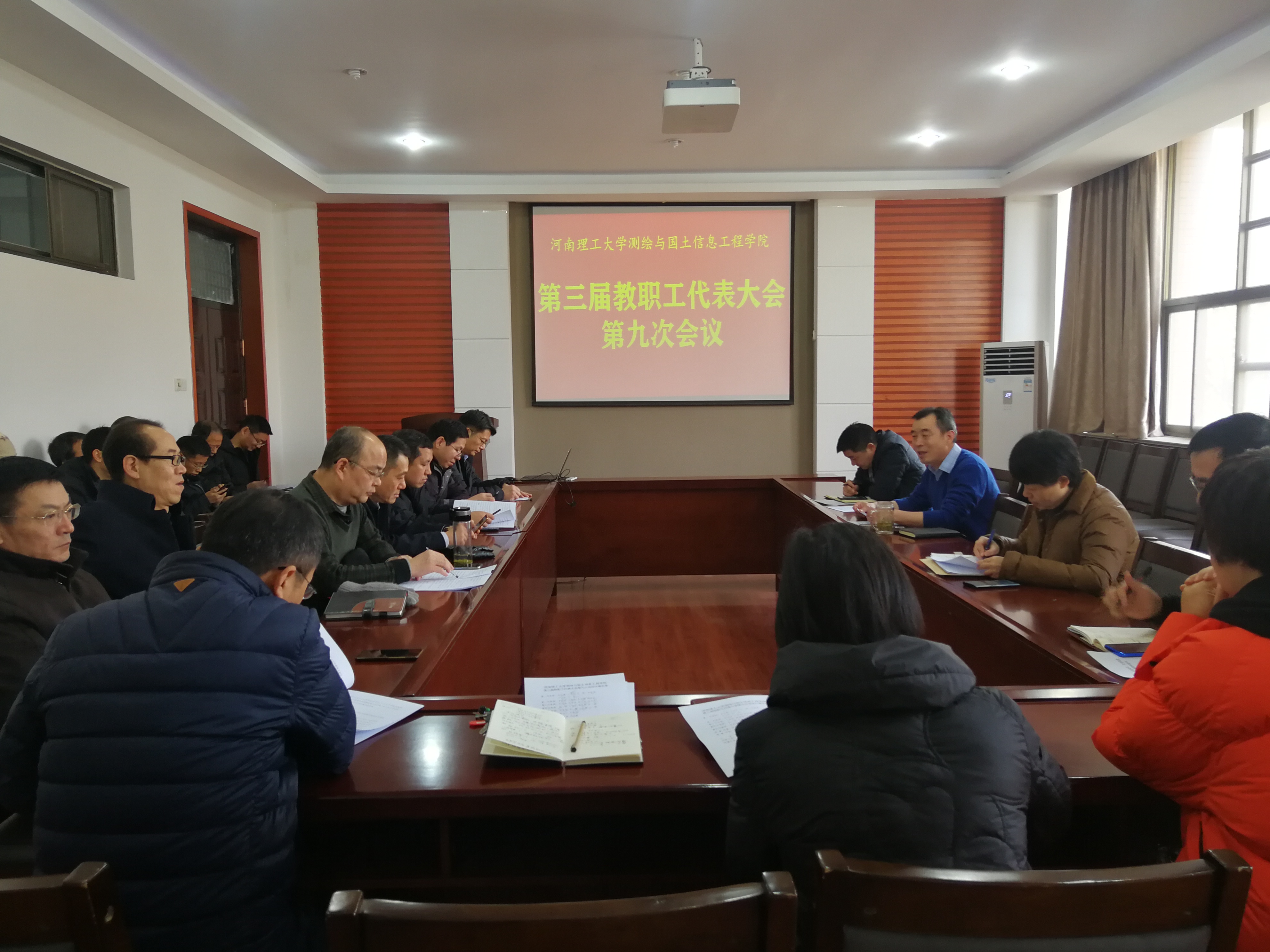 1月12日上午,测绘学院在二楼会议室召开第三届教职工代表大会第九次会议,学院教代会代表、列席代表及邀请代表23人参加了会议,会议由院长魏峰远主持。