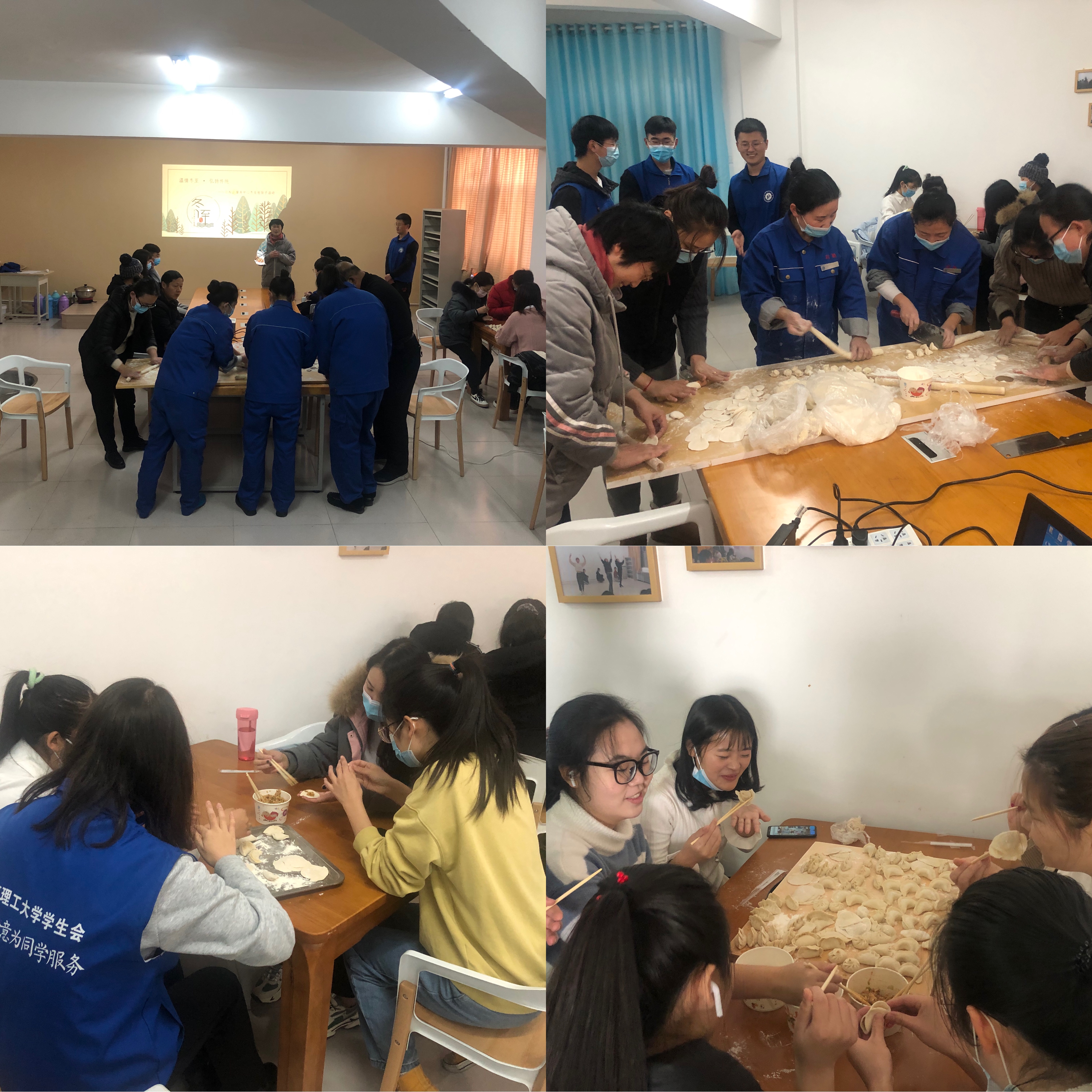 活动现场,广大员工及学生踊跃参与,大家分工协作,有的调馅,有的揉面,你擀皮来我包馅,窗外寒意袭人,屋内却是热闹非凡、温暖如春,大家一边包着饺子,一边交流家乡的风俗和包饺子的技巧,气氛轻松愉快,到处洋溢着“家”的味道、“家”的温馨。众人拾柴火焰高,不多时,一盘盘饺子就包好了,有敦实厚重的,有别致精巧的,还有四不像的。当热气腾腾的饺子在期待中被端上桌,大家吃着自己包的饺子,每个人的脸上幸福之情溢于言表,同学们还将饺子分别送至各楼值班人员的手中,感谢宿管阿姨平时的关心与爱护,场面温情而温馨。