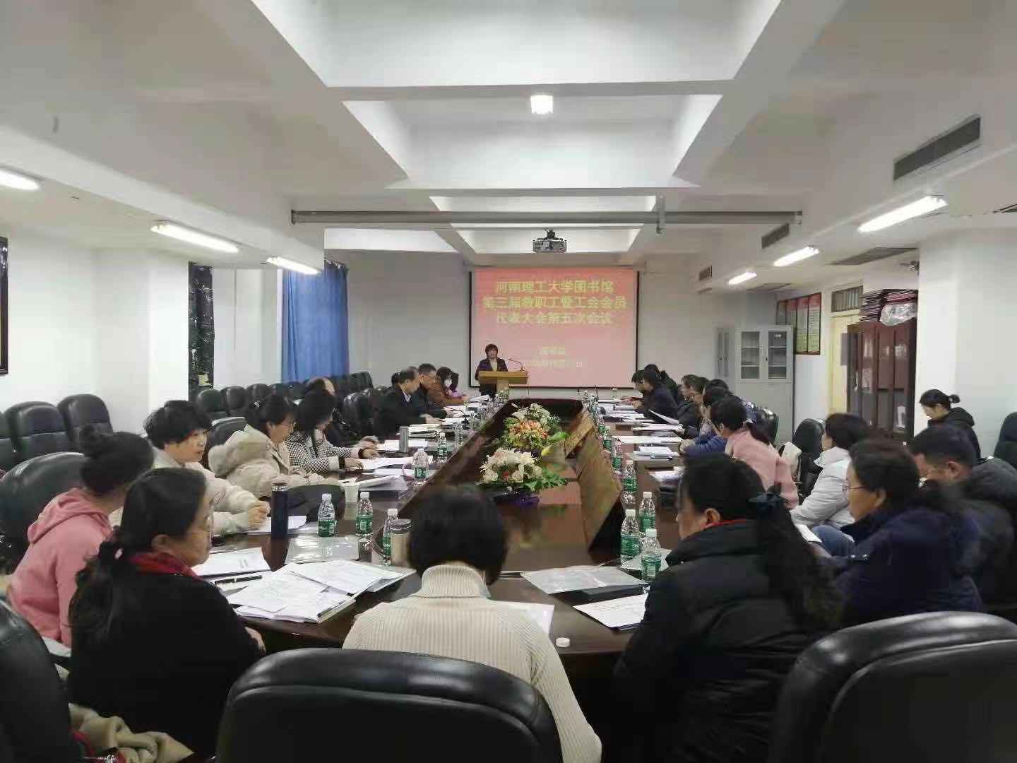 12月17日,河南理工大学图书馆第三届教职工暨工会会员代表大会第五次会议在第一图书馆会议室隆重召开。本次会议共有36名正式代表和6名特邀代表参加。大会开幕式和闭幕式由图书馆副馆长、工会主席李天姿主持。工作报告和代表讨论、审议分别由图书馆党总支书记袁方和图书馆馆长海林鹏主持。