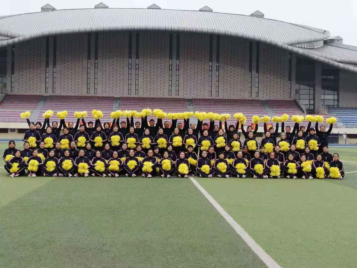 在馆党政班子的大力支持下,在全馆职工的热情参与下,图书馆工会迅速组队,制定计划,分工到人,确保训练工作的高效、有序进行,全体工会干部都付出了极大努力。吴丹、杨文娟两位老师耐心且有趣的教授方式,让大家在欢笑中熟练掌握了每一个动作;张小根、郑琳、路永红、牛可丽等几位老师为队形编排费劲了心思,经常讨论到半夜;尤其张小根老师,在后期准备拍摄时,为了让队伍整齐划一,下班后接了孩子跑去操场拉线画点,寒风中借着手机的光找点,直到全部划完,已经晚上九点了;北馆的老师们,为了参加在南校区的排练,克服种种困难,从未迟到;在岗的老师们承担了大量的工作,给予了队员们极大的鼓励和支持。在整个训练过程中,队员们牺牲小我,努力做到不因个人因素影响集体训练。在整个训练过程中,图书馆面临着新馆建设、老馆搬迁、专业认证等重要且重大的工作,全体图书馆人以高昂的工作热情、迎难而上的激情出色的完成着一项又一项任务。