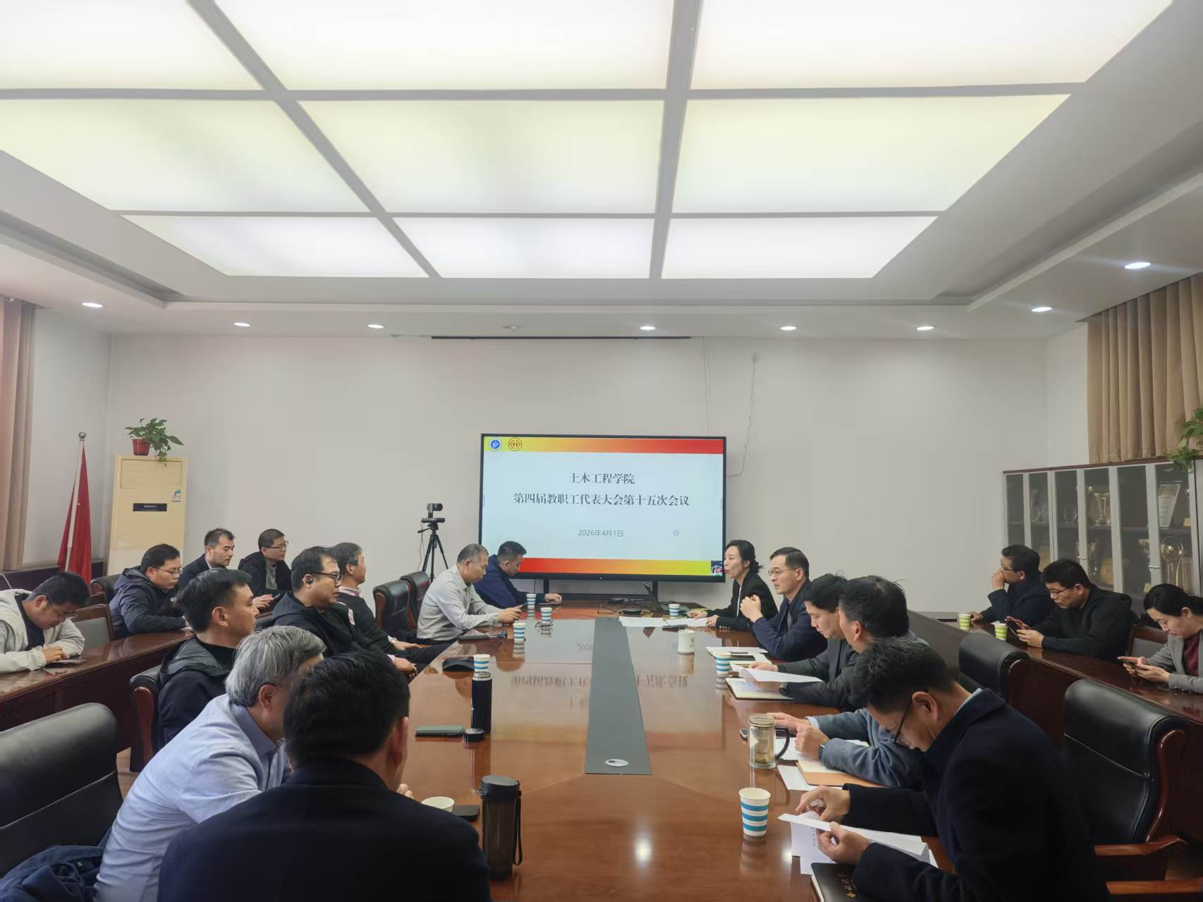 4月1日下午,土木学院在二楼会议室召开第四届十五次教职工代表大会。会议由我院党委副书记、工会主席杨波主持,30余名教职工代表参加。